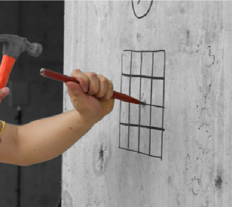 用適當(dāng)工具在砼表面鑿出直徑15mm,深10mm左右的小洞