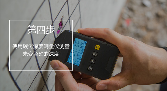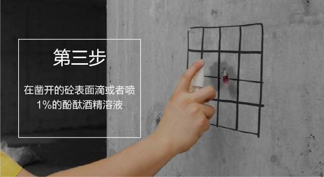 在鑿開的砼表面滴或者噴1%的酚酞酒精溶液
